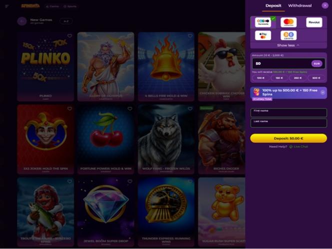 Vuonna 2025 perustettu Spinania on monipuolinen nettikasino, joka tarjoaa pelaajilleen monipuolisen valikoiman kasinopelejä ja urheiluvedonlyöntivaihtoehtoja, mukaan lukien tuhansia oikean rahan kolikkopelejä, live-jakajapelejä, pöytäpelejä ja pikavoittopelejä. Brändi hyväksyy pelaajia Saksasta, Belgiasta ja Espanjasta ja kutsuu heidät sukeltamaan laajaan pelivalikoimaan sekä tuottoisiin bonuksiin ja kampanjoihin.