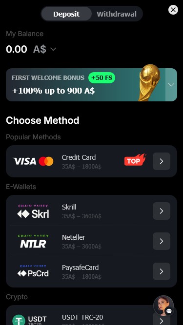 Jos esimerkiksi pidät e-lompakoista, voit käyttää Skrilliä ja Netelleriä. Toisaalta, jos haluat mieluummin maksaa luottokorteilla , kasino hyväksyy Visan ja Mastercardin.