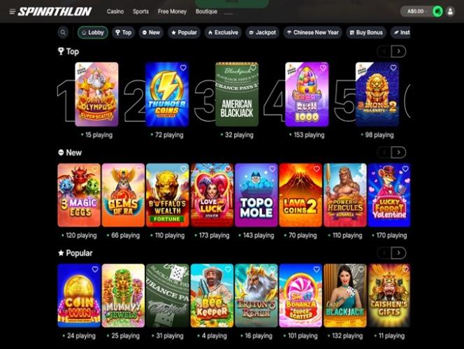 Spinathlon on kryptoystävällinen nettikasino, jolla on vaikuttava pelivalikoima. Nautitpa sitten kolikkopeleistä, hienoista pöytäpeleistä, kuten blackjackista , ruletista ja pokerista, tai jopa urheilusta, Spinathlonilla on sinulle ratkaisu!