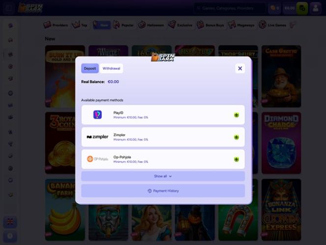 On myös huomattava, että Spinbara Casino toivottaa tervetulleiksi pelaajat Itävallasta, Kanadasta, Sveitsistä, Saksasta, Suomesta, Norjasta ja Uudesta-Seelannista. Jos satut saapumaan näiltä alueilta maailmaa, sinua odottaa runsas pelivalikoima, jota pyörittävät alan tunnetut nimet, sekä mukaansatempaava kampanjasuunnitelma, josta löytyy jokaiselle jotakin.