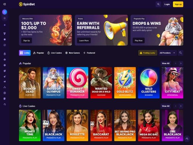 Lyhyt luettelo suosituista peleistä on myös täällä, sekä lyhyt mutta yksityiskohtainen kuvaus siitä, mitä SpinBet voi tarjota asiakkailleen. Kuten kaikilla muillakin säännellyillä nettikasinoilla, keskeiset verkkosivustosivut, kuten käyttöehdot, tukikeskus, usein kysytyt kysymykset, tietosuojakäytäntö ja vastuullinen pelaaminen, löytyvät etusivun alaosasta .