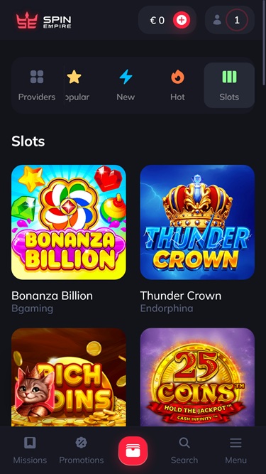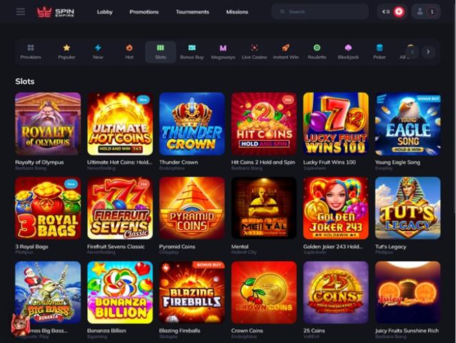 Kuten odotettua, SpinEmpire on nettikasino, joka brändinimensä mukaisesti sisältää rikkaan kolikkopelivalikoiman , jossa on lähes viisituhatta nimikettä ja houkuttelevaa sisältöä, jota tämän suositun pelin fanit varmasti arvostavat.