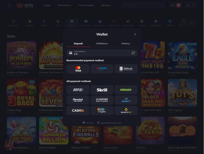 Pankkiasioiden osalta kasino tukee useita talletus- ja kotiutustapoja: pankkisiirtoja, luotto- ja pankkikortteja, Revolutin , Interacin ja suosittuja e-lompakoita, kuten Skrill, NETELLER, MuchBetter, MiFinity…