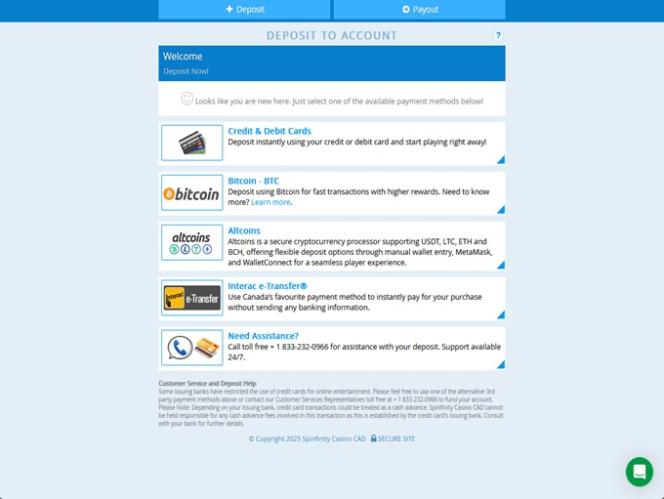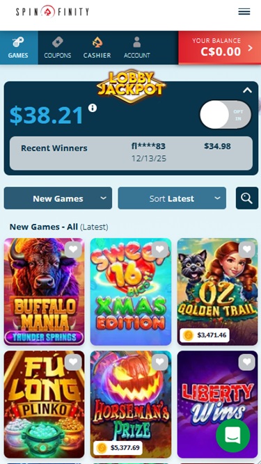 Spinfinity Casino Kuvakaappaukset