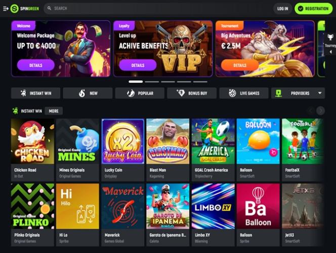 SpinGreen on nettikasino, joka on suunnattu Kanadassa, Saksassa, Uudessa-Seelannissa ja Suomessa toimiville uhkapelaajille. Tässä houkuttelevassa, Curaçaon pelivalvontalautakunnan sääntelemässä uhkapelipaikassa kasinopelaajilla on mahdollisuus pelata sekä suosittuja kasinopelejä että uusia kasinopelejä. Alustalla on monipuolinen valikoima pelejä, jotka sopivat jokaisen mieltymyksiin, olivatpa he sitten ensikertalaisia iGamingin maailmassa tai kokeneita pelaajia.