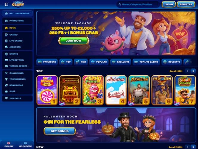 Spins of Glory on monipuolinen nettikasino ja urheiluvedonlyöntisivusto, joka tarjoaa pelaajille huomattavan määrän pelejä ja viihdevaihtoehtoja, kuten oikean rahan kolikkopelejä, live-jakajia, pöytäpelejä ja crash-pelejä. Se isännöi myös valtavaa määrää kampanjoita ja bonuksia, jotka parantavat merkittävästi sekä kasinopelaajien että urheiluvedonlyöjien kokemuksia. Pelaajilla on myös mahdollisuus käyttää useita kryptovaluuttoja varojensa hallinnassa, mukaan lukien Bitcoin ja lukuisia muita vaihtoehtoja.
