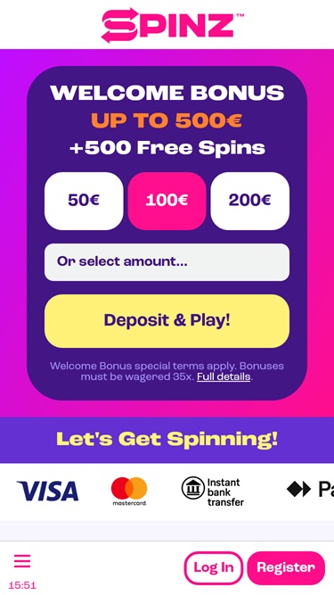 Sen käyttäjäystävällinen käyttöliittymä vaalealla tilalla ja kirkkaan pinkeillä yksityiskohdilla on optimoitu kaikille saatavilla oleville laitteille näytön koosta tai tyypistä riippumatta. Tämä on loistava vaihtoehto, sillä pelaajat voivat nauttia Spinzissä viettämästään ajasta tietokoneellaan, suosikkipelituolissaan tai sohvallaan tai liikkeellä ollessaan.
