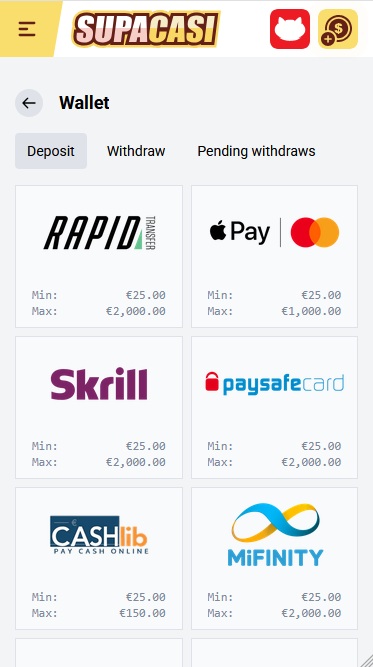 Pankkivaihtoehdot Supacasi Casino -sivustolla