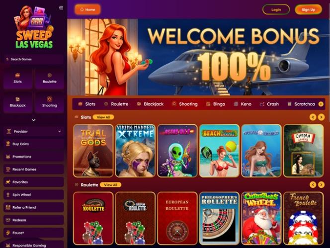 Vuonna 2025 perustettu SweepLasVegas on sosiaalinen kasino, joka toivottaa Yhdysvalloista tulevat pelaajat tervetulleiksi laajalla valikoimalla kasinotyylisiä pelejä, kuten nettikolikkopelejä, live-jakajapelejä, pöytäpelejä, crash-pelejä ja monia muita erikoispelejä. Brändillä on palkitseva kampanjasuunnitelma, johon kuuluu useita bonuksia ja kampanjoita.