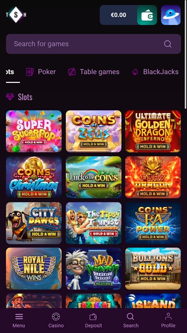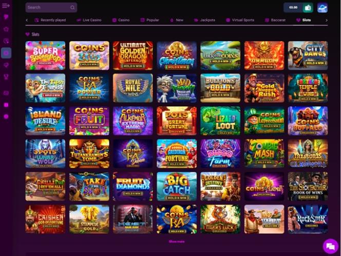 Heti alkuun verkkosivusto tervehtii sinua modernilla käyttöliittymällä, joka mahdollistaa helpon navigoinnin kasinon kaikissa tärkeissä osissa. Näytön vasen puoli on varattu valikosta, josta löydät todellisen saldosi, bonussaldosi, uskollisuuspisteesi ja tasosi.