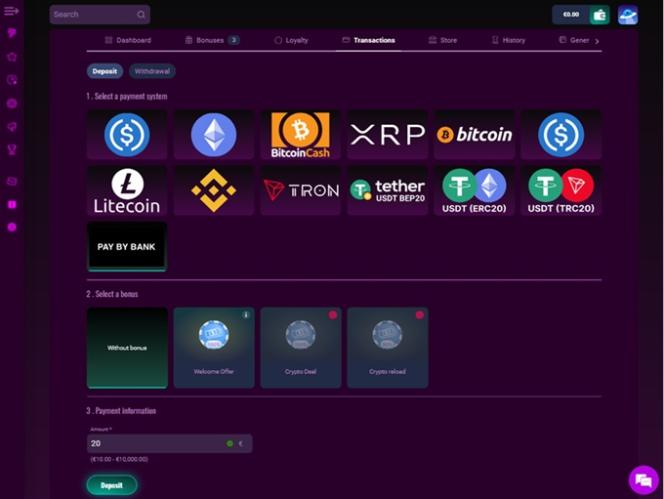 Crypto Deal on toinen saatavilla oleva bonus, joka on pohjimmiltaan talletusbonus ensimmäiselle kryptovaluutatalletuksellesi. Valitettavasti tähän ei sisälly ilmaiskierroksia toisin kuin edelliseen bonukseen.