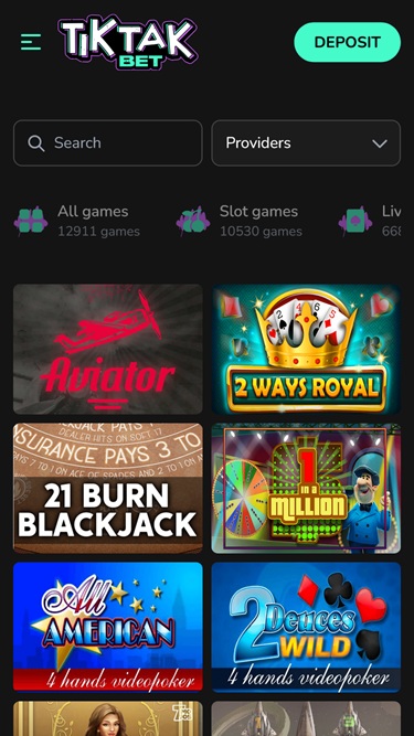 Kasino-ohjelmistojen tarjoajat , kuten Evolution Gaming, Ezugi, Habanero Systems, Media Live, Net Entertainment, Playtech, Quickspin, Spinomenal ja muut iGaming-yritykset tarjoavat nettikasino-operaattoreille korkealaatuista sisältöä. Nykyaikaiset pelaajat tietävät, että vakavasti otettavat iGaming-brändit pyrkivät sisällyttämään valikoimaansa sekä kasinoklassikoita että innovatiivisia pelivaihtoehtoja ja uusia pelejä , ja TikTak Bet on yksi niistä.