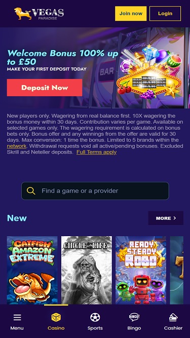 Vegas Paradise - Upouusi kasino upealla ulkoasulla ja loistavilla MG-peleillä. He toivottavat uudet pelaajat tervetulleiksi 100 % bonuksella ja vastaavat sen 200 krediittiin asti, ja niillä on 50-kertaiset kierrätysvaatimukset.