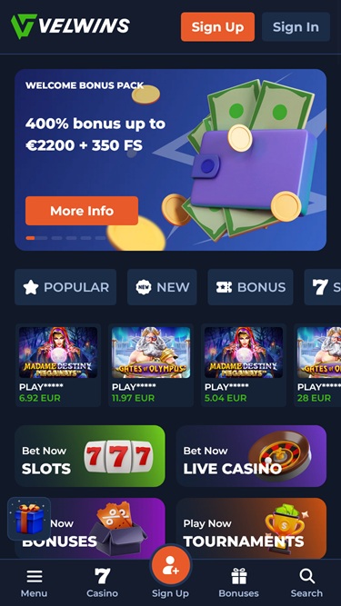 Jos upeiden bonusten ja kampanjoiden metsästys on ensisijainen huolenaiheesi etsiessäsi loistavaa nettikasinoa, tulet iloiseksi kuullessasi, että Velwinsillä on uskomattoman laaja kampanjasuunnitelma, joka on täynnä erilaisia bonuksia ja kampanjoita. Ensinnäkin jokainen uusi pelaaja on oikeutettu lunastamaan tervetuliaisbonuspaketin, joka sisältää useita talletusbonuksia.