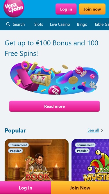 Vera John Casino tarjoaa runsaita bonuksia. Kaikilla uusilla pelaajilla on mahdollisuus saada 100 % tervetuliaisbonus 100 euroon asti ensimmäisellä talletuksellaan, joka tulee kierrättää neljäkymmentä kertaa yleisten sääntöjen mukaisesti.