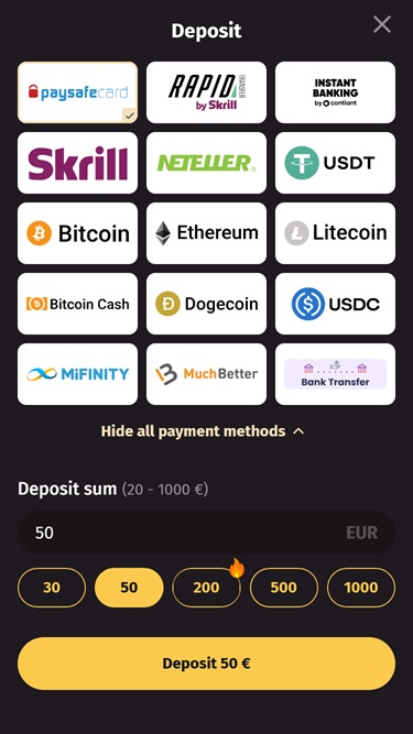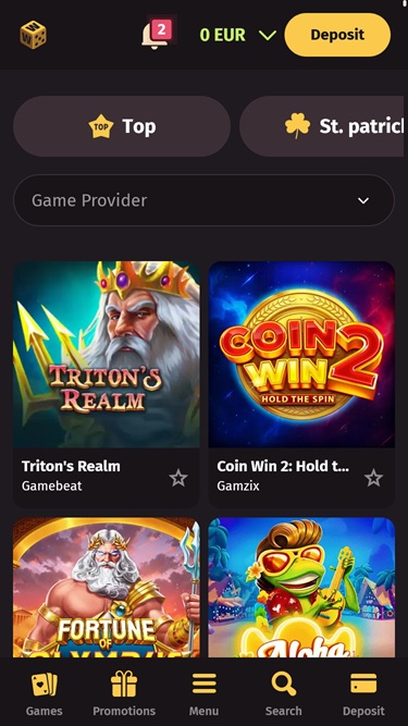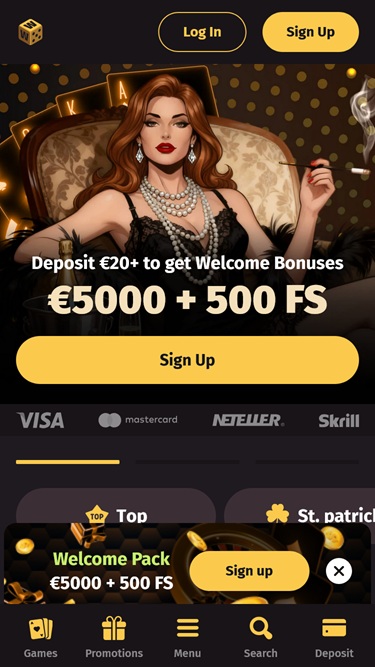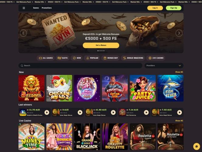 Etusivun yläosa on varattu vieritettävälle bannerille, joka esittelee joitakin jännittävimmistä kampanjoista, joita voit lunastaa täällä. Alla on luettelo verkkosivuston suosituimmista ja uusimmista peleistä sekä joistakin pelatuimmista livekasinopeleistä .