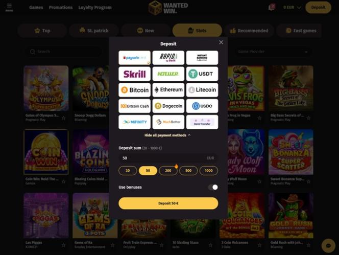 WantedWin Casino on Curaçaon peliviranomaisen sääntelemä ja lisensoima. Operaattori toivottaa tervetulleiksi pelaajia Saksasta, Uudesta-Seelannista, Norjasta ja Kanadasta.