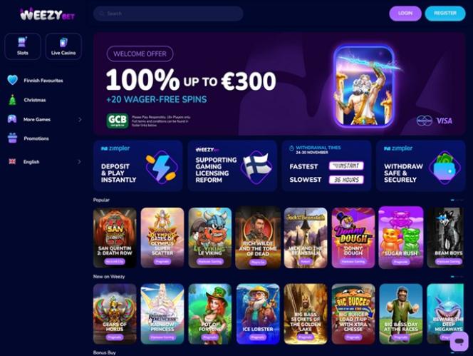 WeezyBet.com on nettikasino, jota sääntelee ja lisensoi Anjouanin autonomisen saaren hallitus, Komorien liitto. Tämä operaattori keskittyy pelaajiin Suomessa, Tanskassa, Saksassa, Alankomaissa, Italiassa, Kreikassa ja Kanadassa. Vaikka kuuluisitkin johonkin toiseen uhkapelialueeseen, pysy kuulolla, sillä tämä brändi näyttää ensi silmäyksellä erittäin houkuttelevalta.