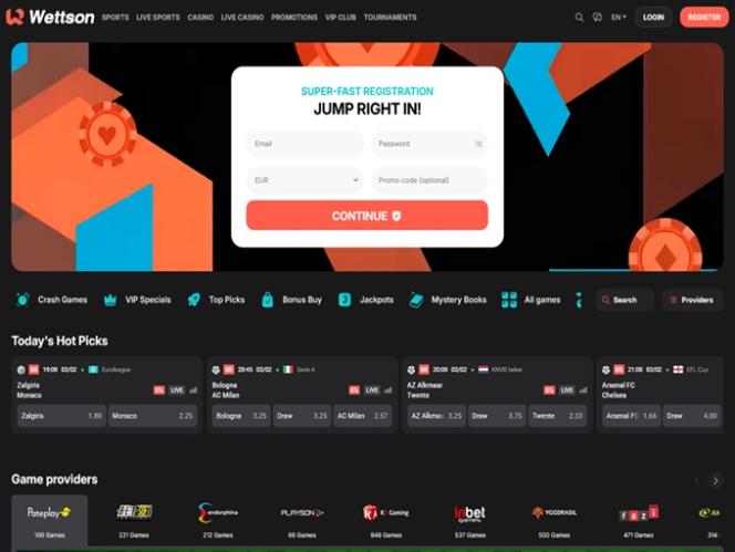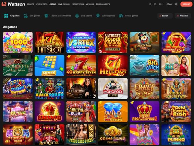 Vuonna 2025 perustettu Wettson on uusi nettikasino, joka pyrkii houkuttelemaan suurta yleisöä tarjoamalla laajan valikoiman kasinopelejä ja urheiluvedonlyöntivaihtoehtoja, mukaan lukien tuhansia oikean rahan kolikkopelejä, live-jakajapelejä, pöytäpelejä ja pikavoittopelejä, sekä vankan kampanjasuunnitelman, jossa on paljon bonuksia ja kampanjoita. Kasino hyväksyy pelaajia Kanadasta, Saksasta, Itävallasta ja Suomesta.