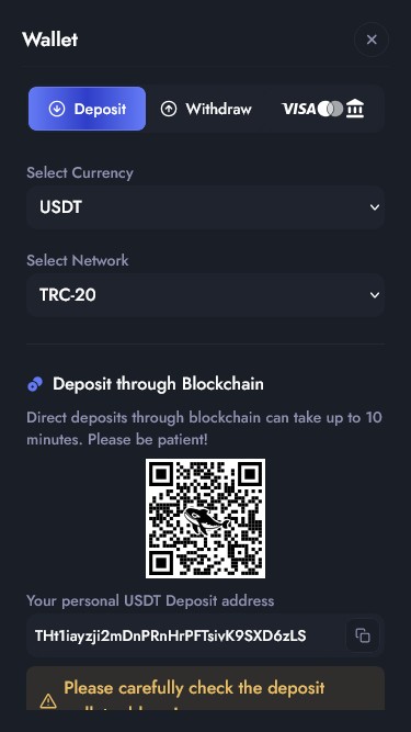 Kasino tukee kryptovaluuttoja, kuten BTC, ETH, SOL, TON, USDC ja USDT. Tämä antaa pelaajille todellista joustavuutta maksujen tekemisessä.