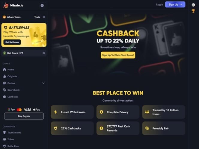 Whale.io tarjoaa upeita kampanjamahdollisuuksia , kuten kanta-asiakasohjelman erinomaisine palkintoineen.BattlePass-palvelun kautta, joka on voimassa tietyn ajan, pelaajilla on mahdollisuus ansaita anteliaita kasinobonuksia, lisäpyöräytyksiä, viikoittaisia käteispalautuksia, loot boxeja, korkeampia RTP-arvoja, ilmaisia urheiluvetoja ja niin edelleen.