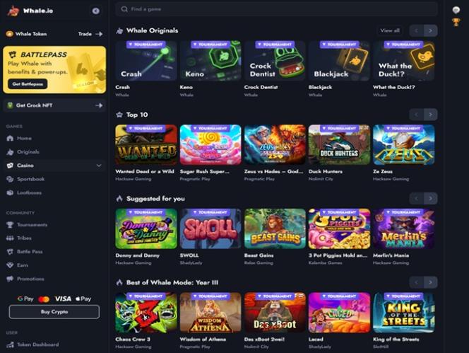 Mukana on myös toinen upea ominaisuus – Tribes, joka on Whale.io:n erottuva moninpelivaihtoehto. Sen avulla käyttäjät voivat yhdistää varojaan ja jakaa sekä kokemuksen että palkinnot. Jokainen heimo toimii jaetulla saldolla, jossa pelaajat osallistuvat yhteiseen pottiin ja saavat voittoja suhteessa panokseensa.