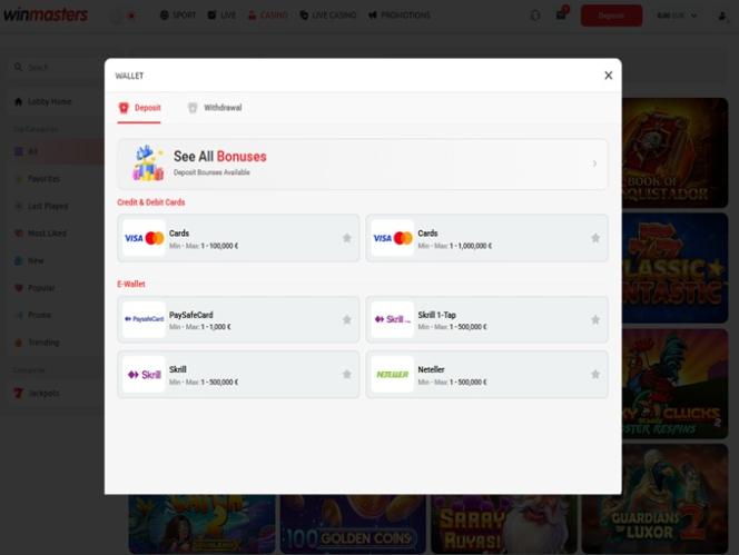 Tykkäsin siitäwinmasters on erittäin hyvä kasino, vedonlyöjille ja kolikkopelien maksajille, sillä on paljon kolikkopelejä ja paljon urheiluvedonlyöntilinjoja urheiluun! minulle se on erittäin hyvä kasino.
