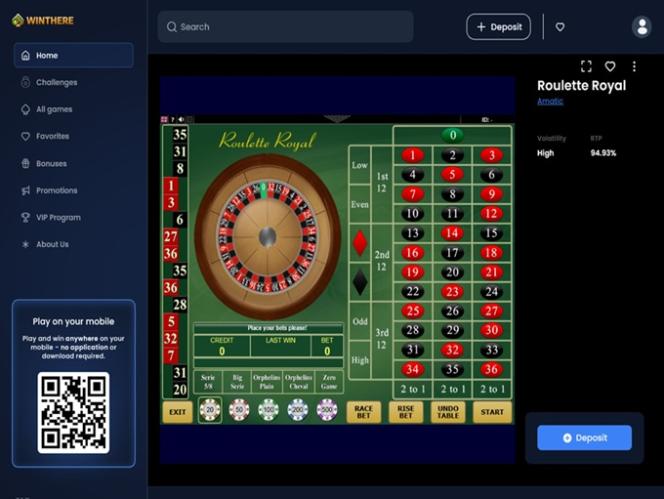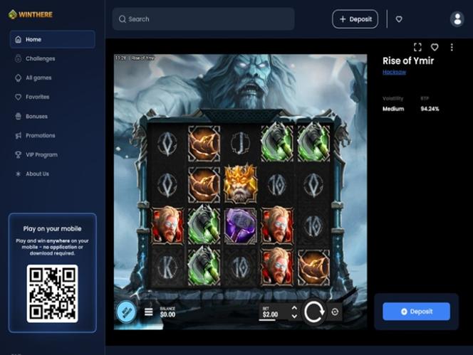 Winthere on moderni uhkapelisivusto, joka lupaa tarjota pelaajilleen unohtumattoman uhkapelikokemuksen tarjoamalla valtavan valikoiman pelejä ja aktiviteetteja, kuten nettikolikkopelejä, live-jakajia ja pöytäpelejä, sekä runsaasti kampanjoita ja bonuksia. Brändi hyväksyy verkkosivustolleen pelaajia Belgiasta, Ranskasta, Yhdistyneestä kuningaskunnasta, Italiasta, Espanjasta, Australiasta, Kanadasta ja Alankomaista ja toivottaa heidät tervetulleiksi tutustumaan kaikkeen tarjontaan.