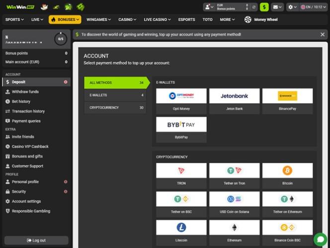 Hyviin kasinopalveluihin kuuluu pelaajille tarjolla olevat erilaiset maksutavat ja luotettavat vaihtoehdot . WinWin Casinon tapauksessa niitä on runsaasti. Pelaajat voivat valita lukuisista turvallisista vaihtoehdoista, kuten pankki- ja luottokortit , suositut e-lompakot , muut verkkopankkijärjestelmät ja kryptovaluutat, kuten Bitcoin https://wizardofodds.com/banking/bitcoin/.