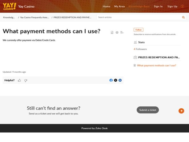 Yay Casinon blogisivulla on laaja luettelo turvallisuusohjeista ja -vinkeistä, joita voit lukea. Brändi tarjoaa myös useita turvallisuustyökaluja, joita pelaajat voivat hyödyntää turvallisuutensa parantamiseksi, kuten käyttörajoitukset, aikarajoitukset ja jopa itsensä poissulkemisen.