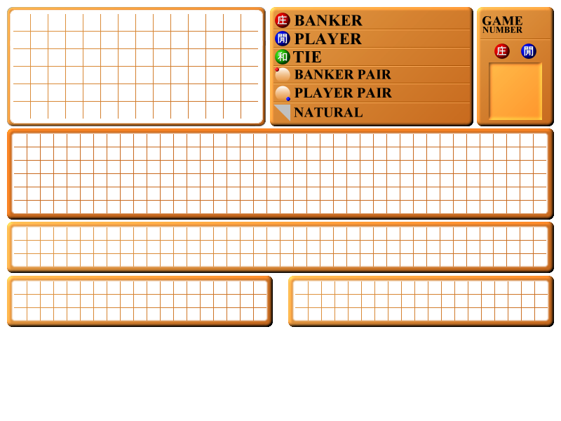 - Katso realistista historiataulua . Oletko koskaan miettinyt, mitä kaikki nuo punaiset ja siniset ympyrät ja viivat tarkoittavat baccarat-tulostaululla? Me teimme niin ennen tämän pelin luomista. Olitpa sitten kiinnostunut Helmilevystä, Isosta tiestä, Pienestä tiestä, Isosilmäpojasta tai Torakkapossusta, tulostaulultamme löydät kaiken. Kirjallisen selityksen kunkin pelin toiminnasta löydät Baccaratin tulostauluja käsittelevältä sivultani.