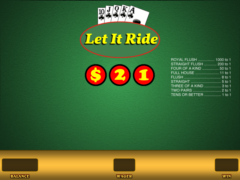 Let It Ride tarjoaa ainutlaatuisen sekoituksen odotusta ja rentoutumista, täydellinen pelaajille, jotka nauttivat pokerista, mutta eivät halua bluffata tai lukea vastustajia . Koska muita pelaajia tai jakajaa vastaan ei kilpailla, kyse on panostamisesta ja korttien avautumiseen mukautumisesta.
