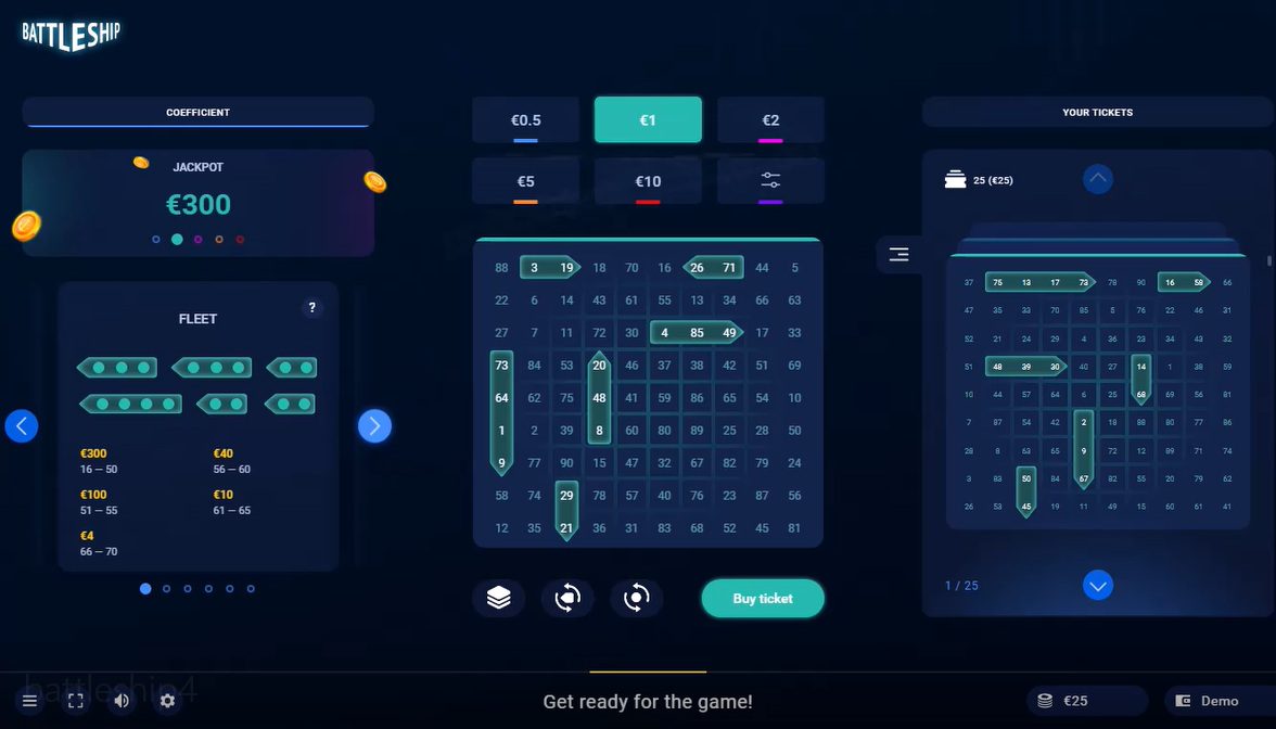 Battleship perustuu suosittuun lautapeliin, josta olen aivan hurahtanut, lisättäköön. Atmosferaa pelataan 90-numeroisella laudalla, jossa on kuusi laivaa. Pelaaja voittaa sen mukaan, kuinka monta palloa tarvitaan upottamaan erilaisia laivayhdistelmiä, kaikki laivat ja kaikki laivat paitsi yksi pallo.