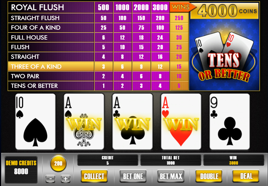 BetConstruct tarjoaa neljä suosittua videopokeriversiota kilpailukykyisillä voittotaulukoilla, joiden palautusprosentti vaihtelee 98,98 prosentista 99,54 prosenttiin. Aivan kuten kolikkopelit, ne näyttävät kuitenkin lähes kaksi vuosikymmentä vanhentuneilta.