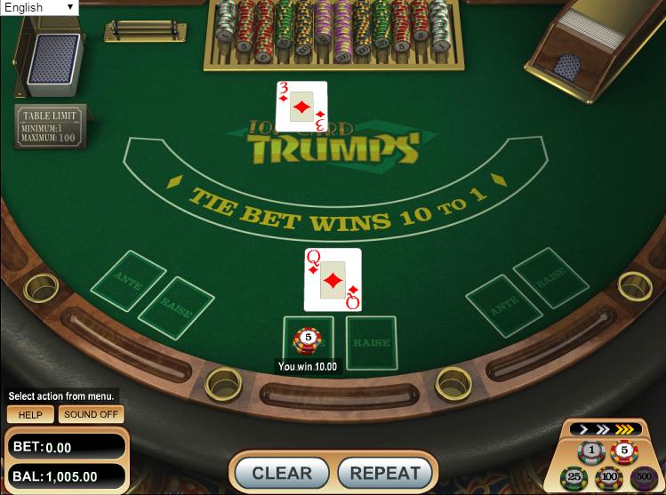Betsoft kutsuu Casino Waria nimellä Top Card Trumps. He käyttävät kuutta pakkaa ja noudattavat tiukkaa "ei bonusta" -sääntöä tasapelien jälkeen. Tämä johtaa 2,88 %:n talon etuun.