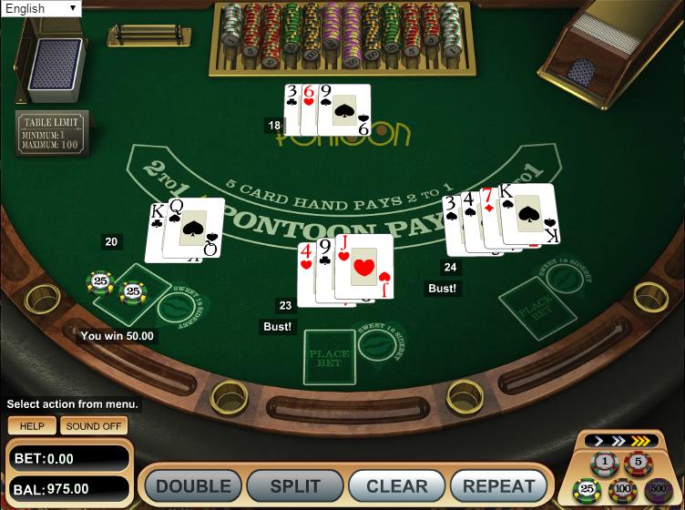 Pontoonin loi Real Time Gaming, ja kilpailijoiden vauhdissa pysymiseksi sen ovat ottaneet käyttöön Playtech, Microgaming, Galewind Software, Cryptologic ja nyt myös Gamesys. Tätä ei pidä sekoittaa australialaiseen pontooniin, joka on sama asia kuin espanjalainen 21 Yhdysvalloissa.
