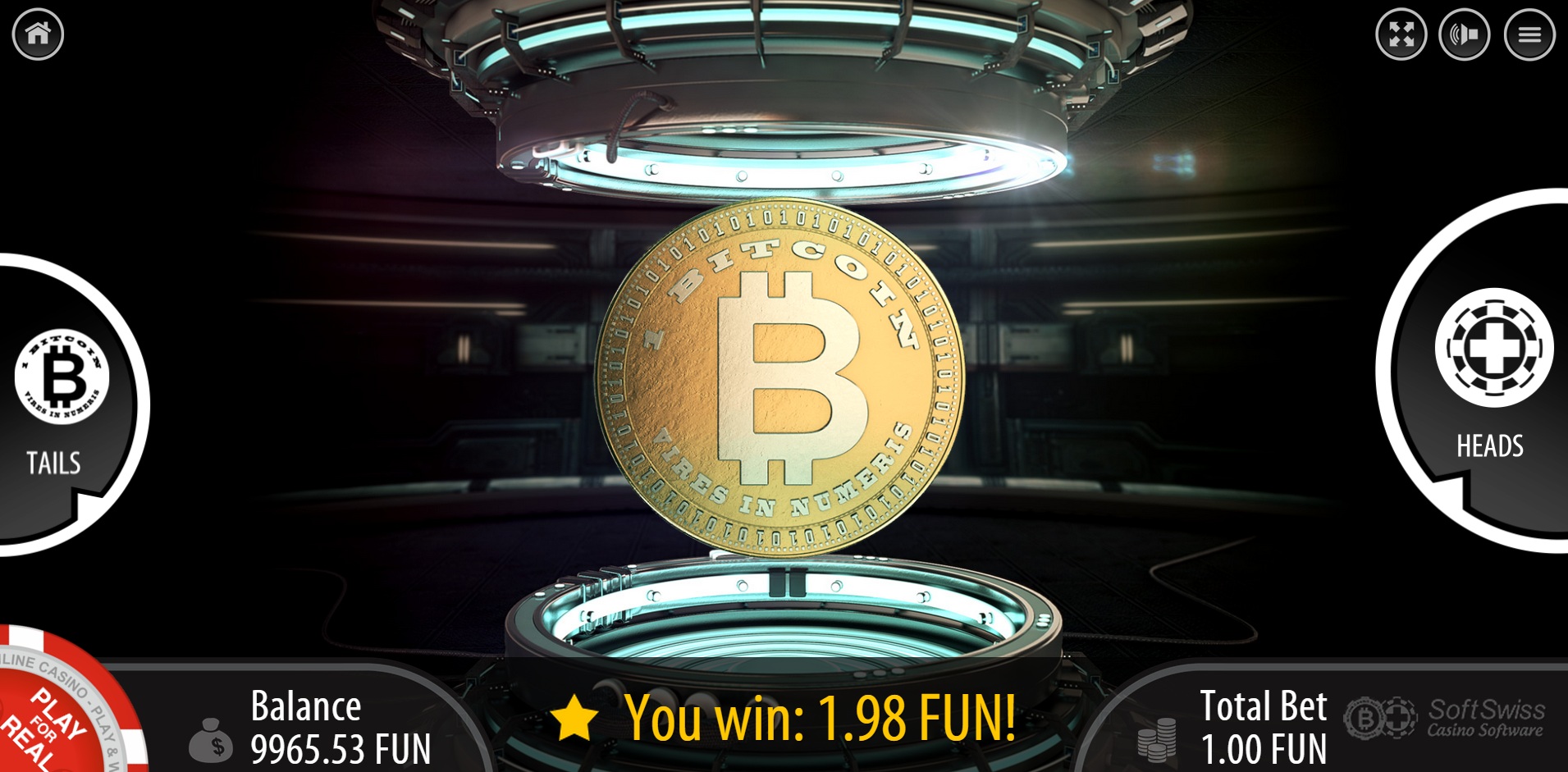 Tämä on yksinkertainen peli, joka perustuu Bitcoinin kääntämiseen. Voitot maksavat 1,98 per 1, joten talon etu on 1 %. Lisätietoja, eikä tässä ole paljon muuta sanottavaa, saat Kruuna vai klaava -osiostani ja etsimällä SOFTSWISS/BGamingin säännöt.