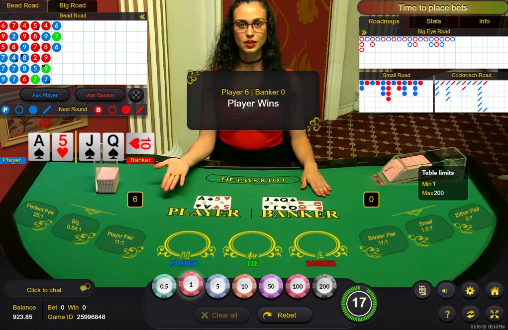 "Live Baccarat" jaetaan Ezugin live-jakajastudioissa. Peli tarjoaa seuraavat panokset: