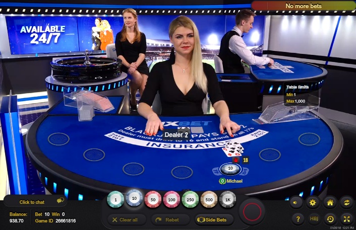 Ezugilla on useita erilaisia blackjack-pöytiä, joissa voi lyödä vetoa. Pöydät näyttävät sijaitsevan eri paikoissa, kuten pöytähuopien väri ja maton kuvio osoittavat.