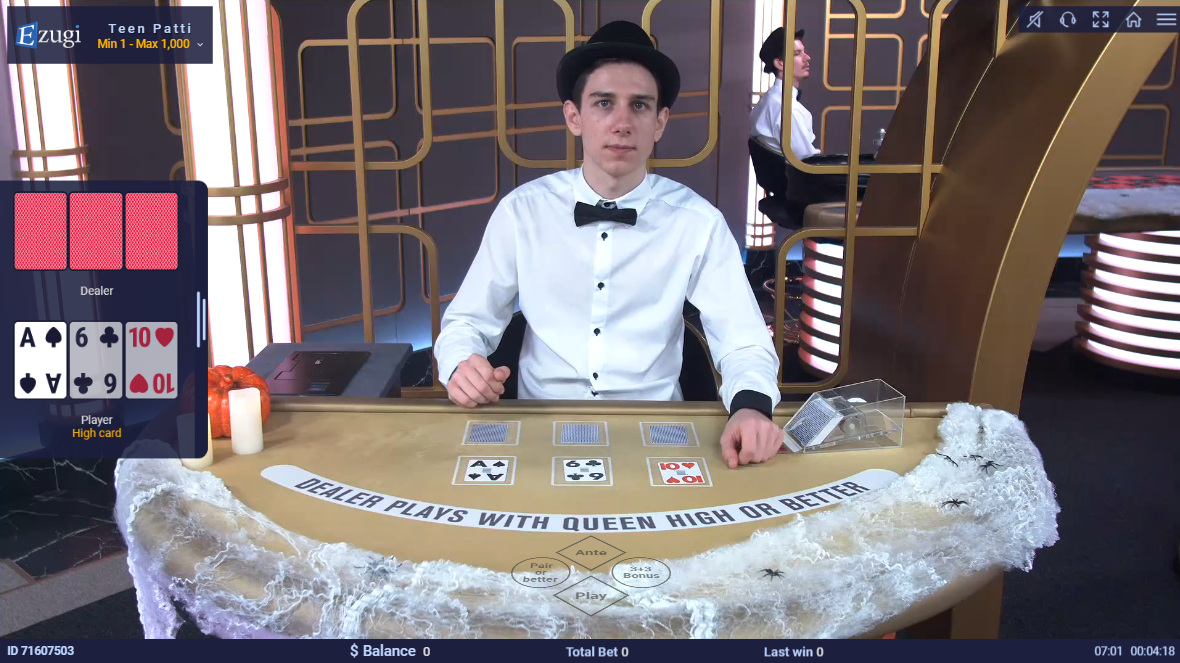 Teen Patti viittaa yleensä Intiassa pelattavaan pokeripohjaiseen peliin. Ezugi kuitenkin käyttää nimeä Three Card Pokerista . Niissä käytetään 1-4-5 Ante Bonus -maksutaulukkoa, ja talon etu on 3,37 %.