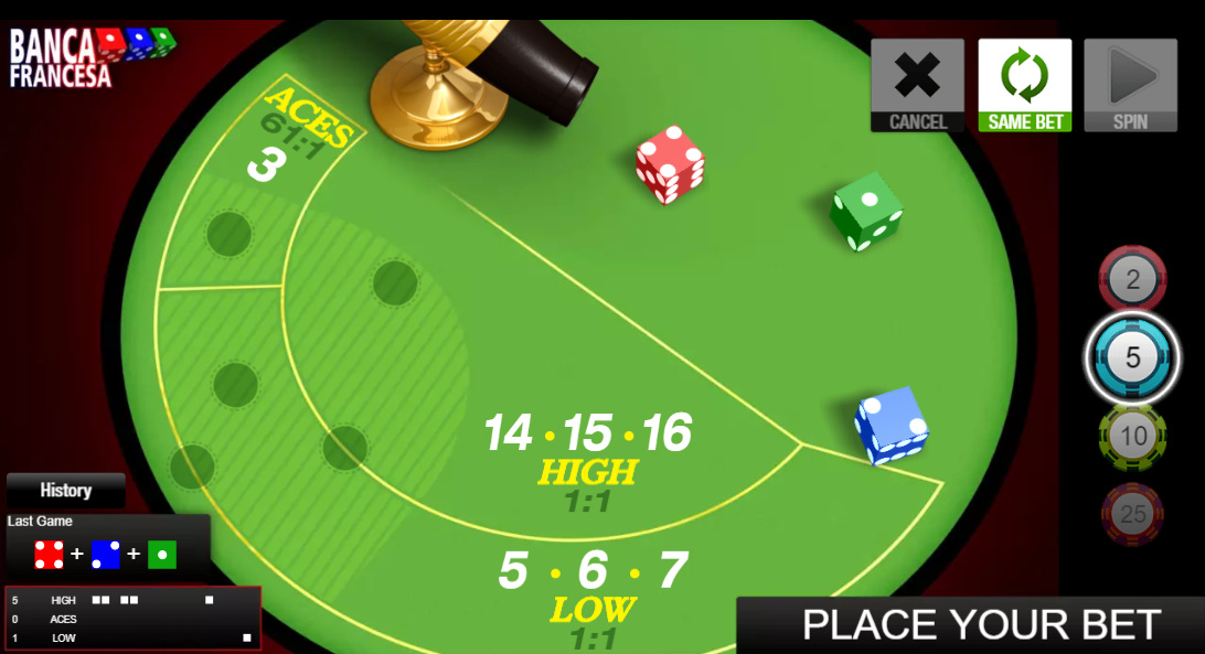 Banca Francesa on portugalilainen noppapeli. Se voitaisiin lyhyesti kuvailla yksinkertaistetuksi versioksi sic bosta . Panostuksia on vain kolme, ja jokaisella on talon etu, matala 0,46 %, jos veto ratkeaa tasapelinä, ja 1,59 %, jos ei (tasapelejä on paljon). Täydelliset säännöt ja analyysi löytyvät Banca Francesa -sivultani.
