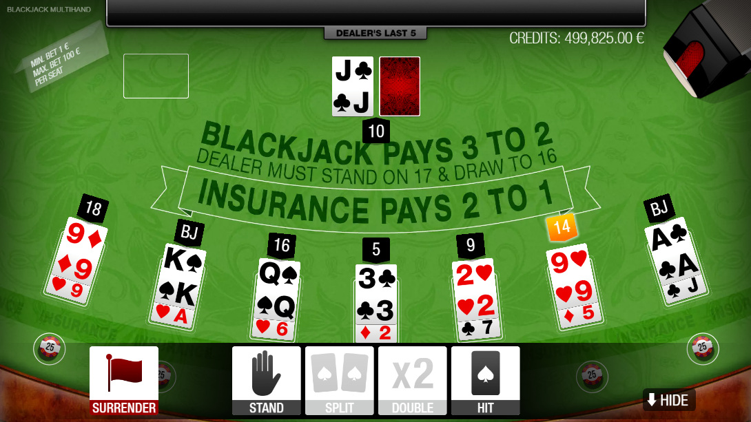 BJ-kantria | Pehmeä 17 | Tuplaus jaon jälkeen | Kaksinkertainen | Jakaa numeron | Ässien jako uudelleen | Vedä ässät jakaaksesi | Kurkistaa | Antautuminen | Palata | Kannet | Live-peli |