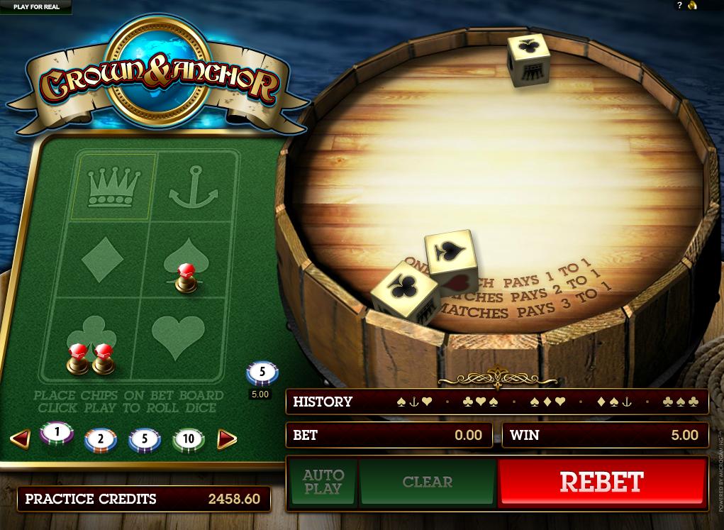 Talon etu Crown and Anchorissa on 7,87 %. Vastaavan panoksen Sic Bossa talon etu on 3,70 %. Ei siis ole mitään syytä pelata Crown and Anchoria, kun Microgaming tarjoaa paremman panoksen Sic Bossa kahden klikkauksen päässä. Tämän pelin pelaaminen olisi kuin panostaisi Big 6:n tai Big 8:n crapsissa. Miksi saada vain tasarahaa, kun place-panos on täsmälleen sama, mutta maksaa 7:6?