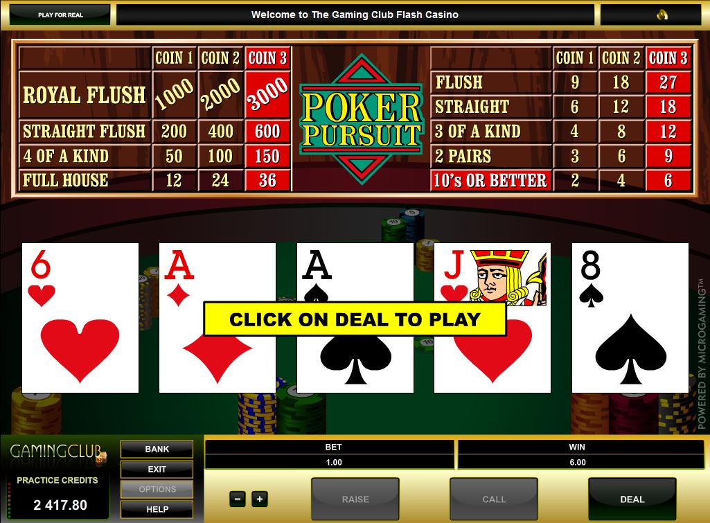 Microgaming tarjoaa mukavan pai gow -pokerin . Pelissä on "talon suunta" -painike, joten on käytännössä mahdotonta väärentää omaa kättään. Noudatetaan vakiosääntöjä ilman pelaajan pankkitoimintaa, joten talon etu on 2,72 %.
