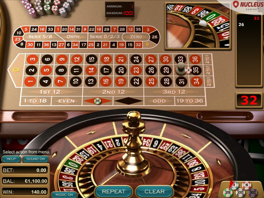 Nucleus tarjoaa kolme rulettiversiota: kaksi yhden nollan ja yhden kahden nollan. Suosittelen pelaamaan vain yhden nollan pyöriä.