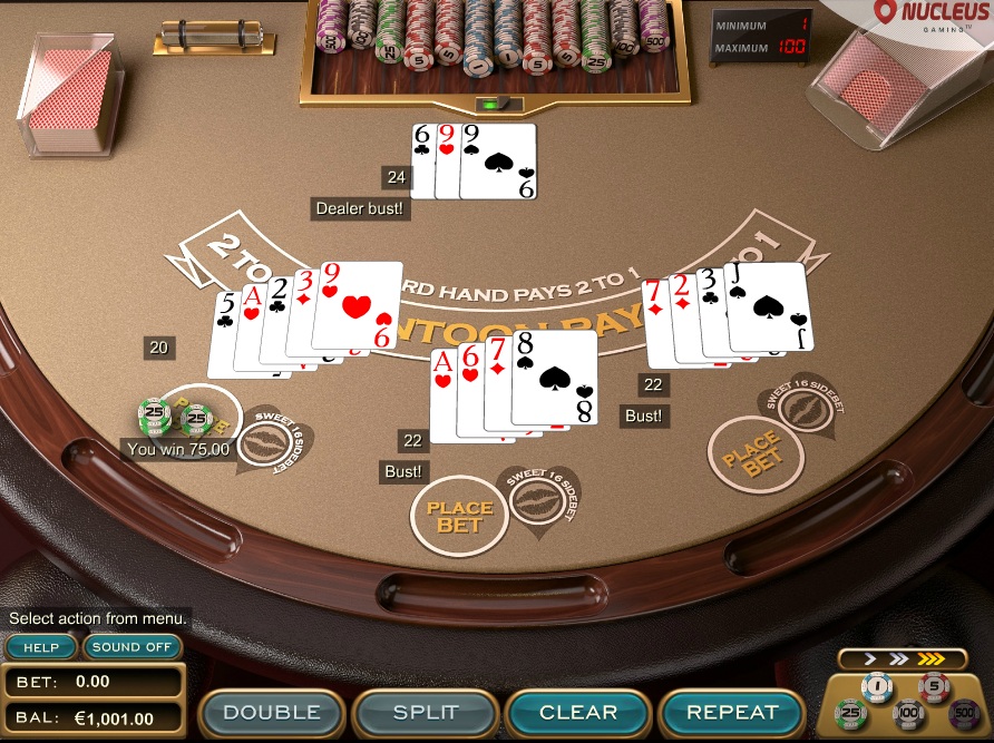 Nucleus noudattaa tavanomaisia sääntöjä, jotka sallivat ässän jakamisen ja jakajan pehmeän 17:n. Käytetään kahdeksaa pakkaa. Tämä johtaa 0,38 %:n talon etuun. Sweet 16 -sivupanoksessa talon etu on 2,52 %.