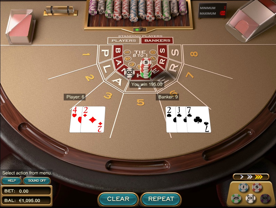 Nucleus tarjoaa yksinkertaisen baccarat-pelin, jossa on kolme pääpanosta – pelaaja, pankkiiri ja tasapeli.