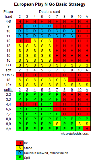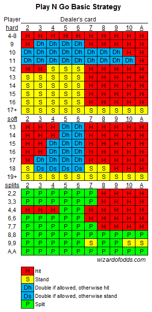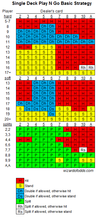 Näiden sääntöjen mukaan talon etu on 1,26 %. Ei ole mitään syytä pelata tätä peliä, kun peruspelissä on 0,46 %:n talon etu. Jos kuitenkin on pakko, napsauta alla olevaa kuvaa nähdäksesi suuremman version näiden sääntöjen perusstrategiasta. Varoitus, kyseessä on epätavallinen strategia epätavallisten sääntöjen vuoksi.