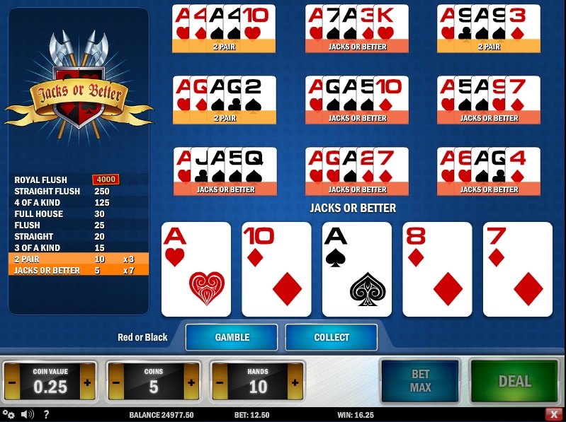| Jacks or Better | 95.00% | Kyllä | 1,2,3,4,5,6,25,50,800 | Ei |