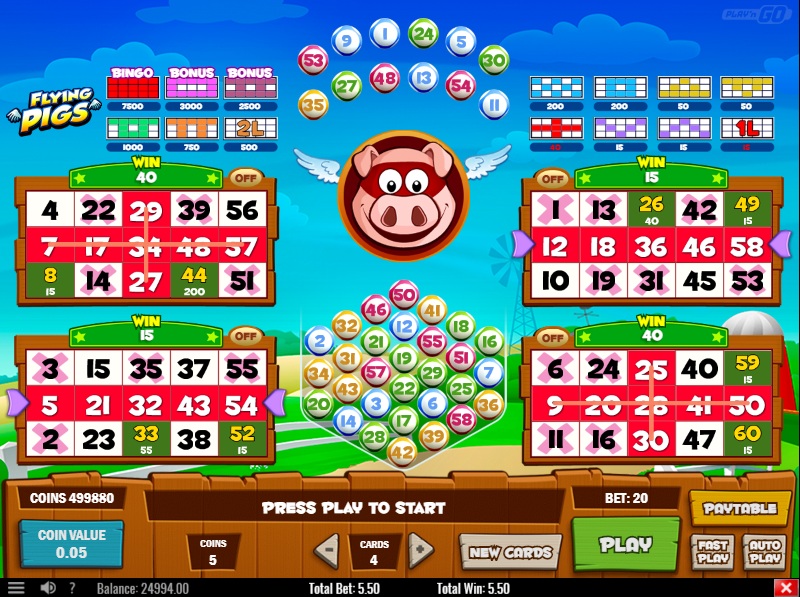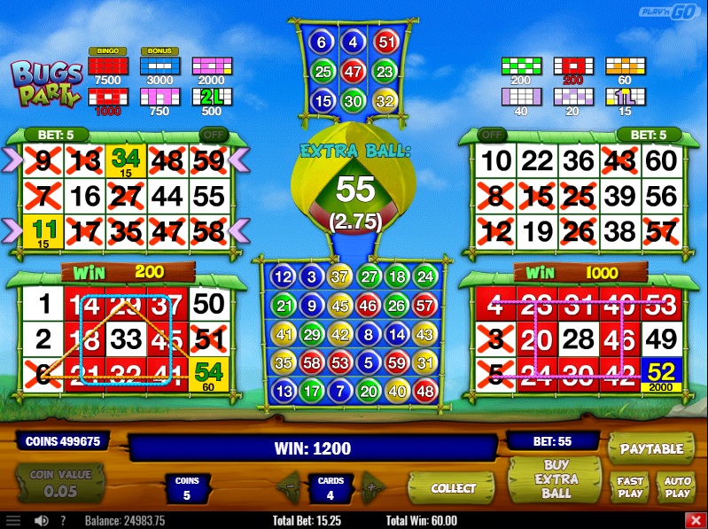 Bingopelejä on kaksi samankaltaista. Molempia pelataan 3 x 5 korteilla. Molemmissa on mahdollisuus ostaa paljon lisäpalloja, jos olet yhden pallon päässä suuresta voitosta. Molemmissa on myös bonuspeli vaikean kuvion peittämiseksi. Ohjetiedostojen mukaan molempien pelien palautusprosentti on 96 %.